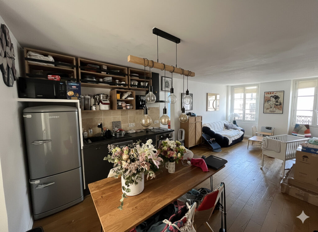 Dans le quartier historique du Marais, à deux pas de la Bastille, un appartement en étage au charme discret attendait sa seconde vie. Quand Ton* et Inn*, un couple bulgare francophile, en ont fait l’acquisition, ils avaient une idée précise : créer un pied-à-terre parisien élégant, familial, et fonctionnel. Habitués à un certain niveau de confort hôtelier, ils ont immédiatement exprimé des attentes fortes sur l’esthétique, la qualité des finitions et la capacité du lieu à accueillir leurs 3 enfants. Ce projet n’était pas une simple rénovation : c’était la construction d’un foyer au charme parisien, sur mesure, dans un quartier vivant et animé.